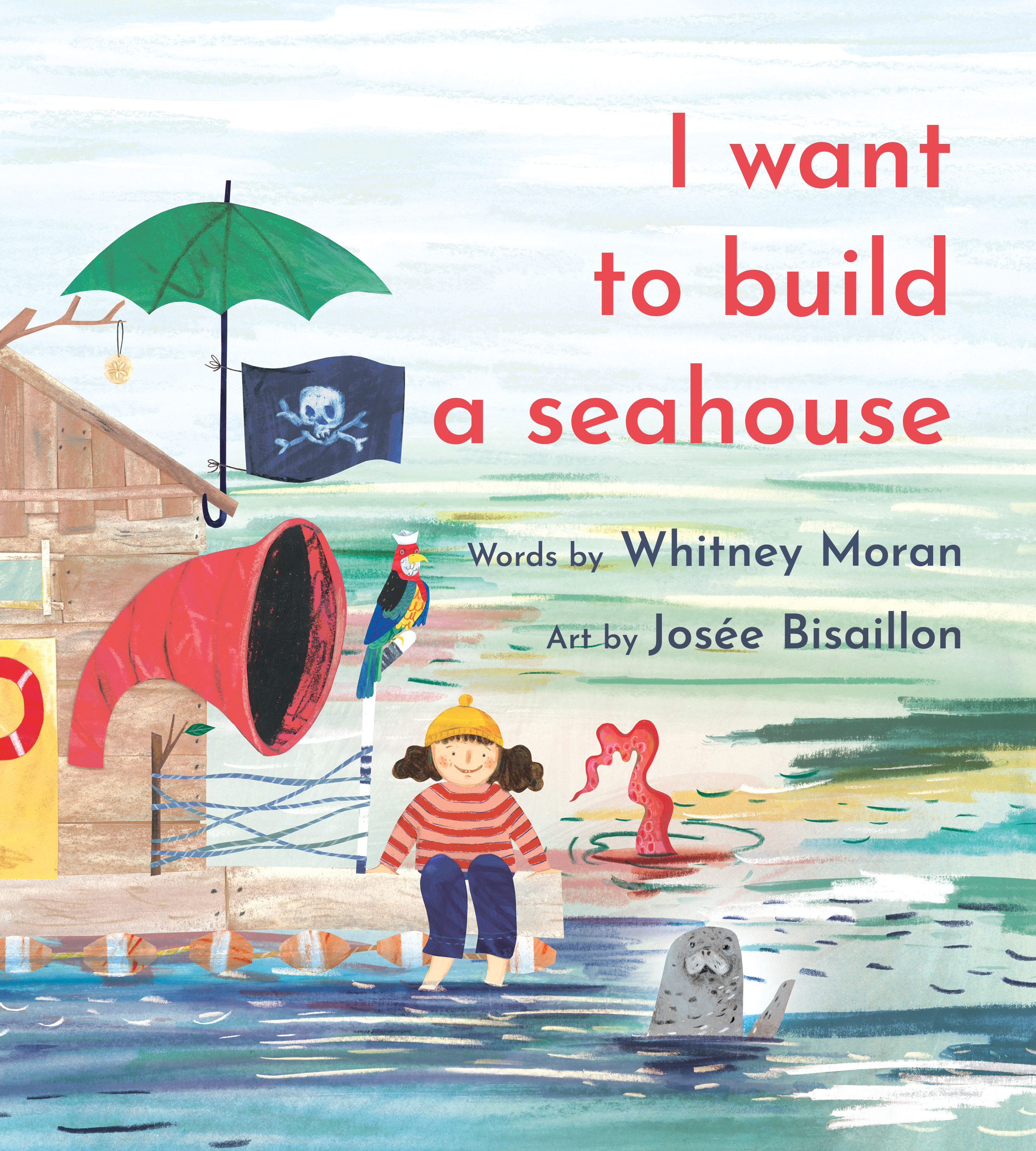 In a lighthouse on the sea lives a young girl who is about to become a big sister. Trouble is, she doesn’t want a little sister. With her peaceful life disrupted, the girl’s only option is to run away—and build her very own seahouse! With a foghorn for a doorbell and a fence of fishing rope, windows made of sea glass, buoys to help it float—and a pirate flag for safety (of course), she’ll have everything she needs. The girl imagines all of the adventures she’ll have, talking parrot in tow: harvesting seaweed from her garden; telling ghost stories to merfolk; charting the tides and sailing by moonlight. But there’s a loneliness that creeps in whenever she thinks of her family back on land. And there’s those pesky stormy seas to consider… A poetic ode to the childhood yearning for freedom, sprinkled with new-sibling jealousy, the debut picture book by editor Whitney Moran, whimsically illustrated with a magnificent coastal palette by award-winning artist Josée Bisaillon, is a heartfelt story of family and independence, and a celebration of imagination and the natural world.