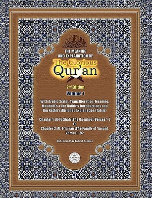 This is the 2nd edition of volume 1 of the ten volumes of The Meaning And Explanation Of The Glorious Qur'an. The first edition of this book contained many formatting and typing errors. In this new edition, we have corrected all the errors found in the first edition. We have also re-arranged the structure of the book and added the full Arabic Text of the thirty Parts of the Qur'an. The reader is now able to read not only the meaning, the transliteration and the tafsir (explanation) of the Glorious Qur'an but also the full Arabic text as well. Our mission is to gather in one place, for the English-speaking public, all relevant information needed to make the Qur'an more understandable and easier to study. This book tries to do this by providing the following: 1. The Arabic Text for those who are able to read Arabic 2. Transliteration of the Arabic text for those who are unable to read the Arabic script. This will give them a sample of the sound of the Qur'an, which they could not otherwise comprehend from reading the English meaning. 3. The meaning of the qur'an (translated by Dr. Muhammad Taqi-ud-Din Al-Hilali, Ph.D. and Dr. Muhammad Muhsin Khan) 4. Background introductions by two famous Islamic scholars, Maududi and Ibn Kathir 5. Explanation (abridged Tafsir) by Ibn Kathir (translated by Safi-ur-Rahman al-Mubarakpuri) We hope that by doing this an ordinary English-speaker will be able to pick up a copy of this book and study and comprehend The Glorious Qur'an in a way that is acceptable to the understanding of the Rightly-guided Muslim Ummah (Community).