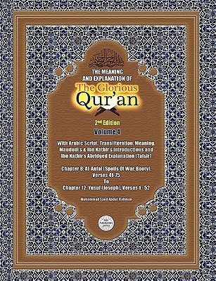 This is the 2nd edition of volume 4 of the ten volumes of The Meaning And Explanation Of The Glorious Qur'an. The first edition of this book contained many formatting and typing errors. In this new edition, we have corrected all the errors found in the first edition. We have also re-arranged the structure of the book and added the full Arabic Text of the thirty Parts of the Qur'an. The reader is now able to read not only the meaning, the transliteration and the tafsir (explanation) of the Glorious Qur'an but also the full Arabic text as well. Our mission is to gather in one place, for the English-speaking public, all relevant information needed to make the Qur'an more understandable and easier to study. This book tries to do this by providing the following: 1. The Arabic Text for those who are able to read Arabic 2. Transliteration of the Arabic text for those who are unable to read the Arabic script. This will give them a sample of the sound of the Qur'an, which they could not otherwise comprehend from reading the English meaning. 3. The meaning of the qur'an (translated by Dr. Muhammad Taqi-ud-Din Al-Hilali, Ph.D. and Dr. Muhammad Muhsin Khan) 4. Background introductions by two famous Islamic scholars, Maududi and Ibn Kathir 5. Explanation (abridged Tafsir) by Ibn Kathir (translated by Safi-ur-Rahman al-Mubarakpuri) We hope that by doing this an ordinary English-speaker will be able to pick up a copy of this book and study and comprehend The Glorious Qur'an in a way that is acceptable to the understanding of the Rightly-guided Muslim Ummah (Community).