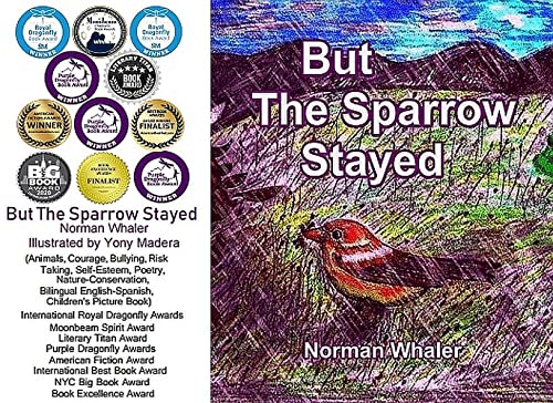 *** AWARD WINNER *** Our feathered friends are at the center of two short poems that explores the need for courage. 'But The Sparrow Stayed' is about standing tall and staying true to who you are. 'First Flight' is about being brave when trying new things even when you are afraid or unsure. The reward can be so amazing! (Animals, Courage, Bullying, Taking Risks, Self-Esteem, Poetry, Nature-Conservation, Bilingual, Animal Sounds, Multimedia, Children's Picture Book) Nuestros amigos emplumados son los protagonistas de dos breves historias que exploran la necesidad de ser valientes. 'PeroEl Gorrión Se Quedó' comparte un mensaje sobre cómo mantenerse firme y permanecer siempre fiel a quien eres. 'Primer Vuelo' explica cómo ser valiente cuando se intentan cosas nuevas, incluso cuando tienes miedo o no estás seguro. ¡La recompensa puede llegar a ser maravillosa! (Animals, Courage, Bullying, Self-Esteem, Taking Risks, Poetry, Nature-Conservation, Bilingual, Animal Sounds, Children's Picture Book)