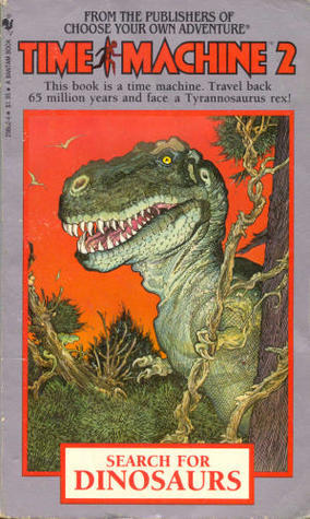 Produced by the same publisher as the more widely known Choose Your Own Adventure series, the Time Machine books take a slightly different approach to the gamebook genre. In Search for Dinosaurs, you are a researcher and adventurer with access to a time machine, and have been asked to use it as a means of traveling back to the days of the dinosaurs to find concrete evidence pinpointing exactly when a dinosaur called the archaeopteryx lived. You can travel back and forth through time as frequently as you require, but life in the land of the dinosaurs is fraught with danger, and you're risking your life by going.
