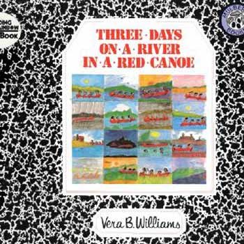 A child sees a red canoe for sale. The family buys it and the child, Mom, Aunt Rosie, and cousin Sam also plan to take a canoe trip on the river. They map out the trip and make plans, purchasing all of the supplies they will need on their trip (which you can see in an illustration). Then the child chronicles the family's trip and adventures down the river. The colored pencil illustrations are detailed. Vera Williams frequently uses maps and diagrams to give the reader a clear sense of their trip's path and what they experienced on the way. As the trip goes on the child explains how they traverse a waterfall, wash dishes, cook along the river, the fish and other wildlife seen, and describes other adventures experienced. This story reads smoothly but also has lots of details that you can learn or skip over, such as reading how to tie "two half hitches" (to secure the canoe?), cook dumplings and fruit stew, and set up a tent. Really informative and interesting book that just might make you want to go on your own canoeing or camping trip.