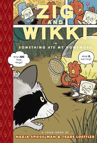 Zig and Wikki: Something Ate My Homework by Nadja Spiegelman, illustrated by Trade Loeffler follows two alien children who acccidentally land on Earth and discover our weird life forms, as they try to find a new pet for a homework assignment.