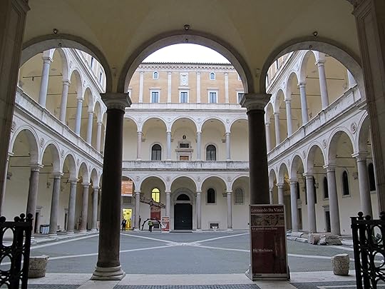 The problem with the palaces is that many cannot be visited, or at least not easily. One of the most formidable is Palazzo FarnesePalazzo della Cancellerria since it was the first one to be constructed, from its first stone in the new Renaissance style. The promoter was one of the nipoti from Sixtus IV (a Della Rovere), Cardinal Riario. He funded the palace from his winnings in gambling. Not included in the book but part of my next itinerary will be Villa Farnese in the Trastevere section. There Raphael painted the famous Galatea for the banker Agostino Chigi.