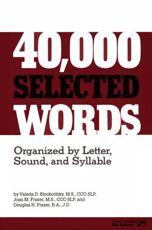 A must for every communication professional in school, hospital, clinic or office practice, 40,000 Selected Words is a sourcebook of words sorted by consonant sounds in the English language. It is dedicated tothe task of improving communications skills. The lists are comprehensive and varied enough to be used with children or adults. This handy book is alphabetized and organized by initial, medial and final positions and into consonant clusters/blends. It includes medial and final sounds and blends not easily found in a standard dictionary and is arranged by a number of syllables (1-5) in each word to aid the students progression from simple to complex. There are lists for all spellings for each sound, and sounds are indicated by English letters and phonetic spellings. The book is indexed in the upper corner of each page for easy flip-through use.