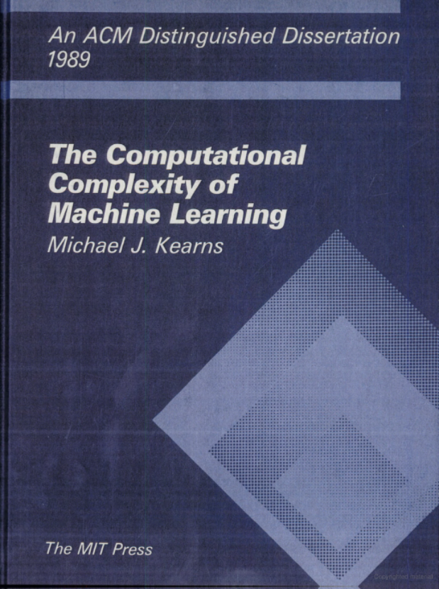 "The Computational Complexity of Machine Learning" is a mathematical study of the possibilities for efficient learning by computers. It works within recently introduced models for machine inference that are based on the theory of computational complexity and that place an explicit emphasis on efficient and general algorithms for learning.