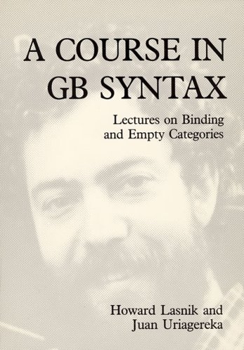 A Course in GB Syntax is a new kind of linguistics textbook. It presents the fundamental concepts of the Government-Binding approach to syntax in a lecture-dialogue format that conveys the sense of a changing field, with live issues under debate. Students and professionals seeking a lucid introduction to the complexities of GB syntax will have the experience of participating in an actual course taught by a major practitioner. The presentation of fundamentals is followed by further examples, easily understandable discussion of technical questions, and alternative analyses within the same basic framework. The book fits well between a more general introduction like van Riemsdijk and Williams' Introduction to the Theory of Grammar and the major GB literature. While it has been designed for use by graduate students in a second semester syntax course, it can serve as a reader's companion to important but sometimes forbidding texts like Noam Chomsky's Lectures on Government and Binding and Some Concepts and Consequences of the Theory of Government and Binding.The informal tone makes the subject more approachable; examples are worked out more slowly and in greater detail than is possible in the primary sources; and the definitions and notational devices are carefully explained. Finally, many of the questions that the student might want to raise are raised (in fact, by students) and answers and alternatives are explored. The lectures give an overview of the modular GB model and cover in detail Case theory; Binding Theory; the determination of "empty categories," parasitic gaps, and the Empty Category Principle; extensions and alternatives, such as Aoun's "Generalized Binding Theory" and Higginbotham's "linking" analysis, and various open questions, such as the nature of the Case filter, tough movement, weak crossover, illicit NP-movement, and topicalization.