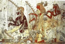 فمعابد المصريين القدماء وقبورهم مليئة برسوم ونقوش لمختلف الآلات الموسيقية والحركات الراقصة فمثلا وبداخل مقبرة توت عنخ آمون عثرعلى بقايا سليمة لآلات موسيقية وهي الان معروضة في بعض متاحف أوروبا