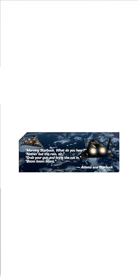The worst part was some dated writing about women (at some point Apollo tells Serina, "...you're too pretty to look sad" (p. 243). This after the annihilation of their civilization and a close call with the Cylons and Ovions, bug like creatures that are harvesting humans for food!) So yeah, there's that and a love triangle between two women and Starbuck that never really goes anywhere, not to mention some fat jokes at Jolly's expense, but they're minor enough I can live with it.
