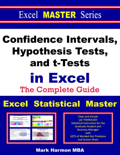 178 pages of clear and simple yet thorough step-by step instructions loaded with lots of screens shots and completed problems in Excel showing how to create and understand confidence intervals, hypothesis tests, and t-tests. You'll completely understand how each type of confidence interval, hypothesis test, and t-test works, when to use it, and how to set it all up in Excel. The lessons in this 178-page e-manual are easy-to-follow but at the graduate level and very complete. If you are a graduate student, you will find this course to be a LOT clearer than your current statistics textbook. This e-manual focuses on showing how to set up and solve problems, not time-wasting academic theory. If you are a business manager, you will really appreciate how easily this e-manual shows you, step-by-step, how to apply graduate-level statistics in Excel to solve the real issues that you face. Some of the topics covered are how and when to use both types of confidence intervals (mean or proportion), all of the types of hypothesis tests (mean or proportion, one-tailed or two-tailed, one-sample or two-sample, and paired or unpaired), and a wide variety of t-tests. This e-manual will make you an Excel statistical master at the graduate level.This e-manual will give you the tools to ace confidence intervals, hypothesis test, and t-tests in your tough graduate statistics course and solve difficult problems on the job.