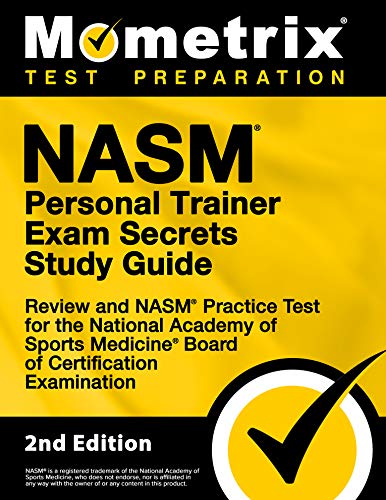 Mometrix Test Preparation's NASM Personal Trainer Exam Secrets Study Guide is the ideal prep solution for anyone who wants to pass their National Academy of Sports Medicine Board of Certification Examination. The exam is extremely challenging, and thorough test preparation is essential for success. Our study guide NASM® is a registered trademark of the National Academy of Sports Medicine, who does not endorse, nor is affiliated in any way with the owner of or any content in this product. The Mometrix guide is filled with the critical information you will need in order to do well on your NASM the concepts, procedures, principles, and vocabulary that the National Academy of Sports Medicine Board of Certification (NASM-BOC) expects you to have mastered before sitting for your exam. The Basic and Applied Sciences section The Assessment section The Program Design and Implementation section The Client Relations and Behavioral Coaching section The Professional Development and Responsibility section ...and much more! Our guide is full of specific and detailed information that will be key to passing your exam . Concepts and principles aren't simply named or described in passing, but are explained in detail. The Mometrix NASM study guide is laid out in a logical and organized fashion so that one section naturally flows from the one preceding it. Because it's written with an eye for both technical accuracy and accessibility, you will not have to worry about getting lost in dense academic language. Any test prep guide is only as good as its practice questions and answer explanations , and that's another area where our guide stands out. The Mometrix test prep team has provided plenty of NASM practice test questions to prepare you for what to expect on the actual exam. Each answer is explained in depth, in order to make the principles and reasoning behind it crystal clear. Many concepts include links to online review videos where you can watch our instructors break down the topics so the material can be quickly grasped. Examples are worked step-by-step so you see exactly what to do. We've helped hundreds of thousands of people pass standardized tests and achieve their education and career goals. We've done this by setting high standards for Mometrix Test Preparation guides, and our NASM Personal Trainer Exam Secrets Study Guide is no exception. It's an excellent investment in your future. Get the NASM review you need to be successful on your exam.