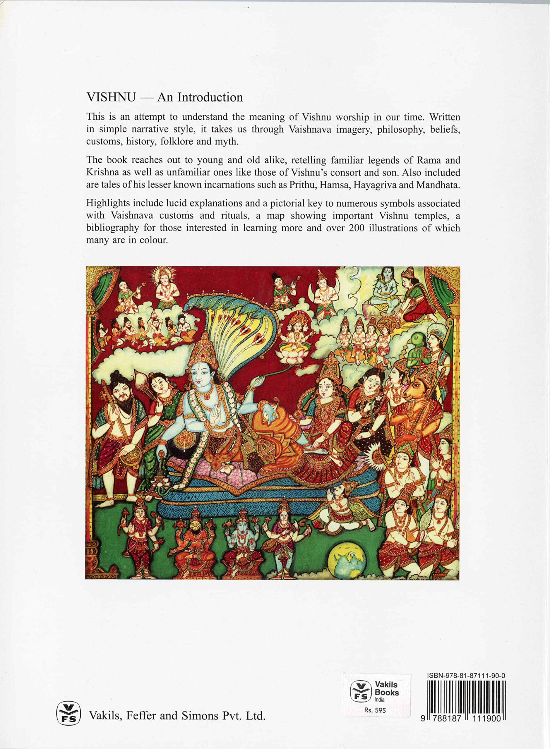 An Introduction attempts to highlight the many aspects of the preserver of the cosmos. As the sustainer of the elements, the lord of ten principal avatars, and the god of a thousand names – Rama, Krishna, Varaha, Narasimha, Narayana – Vishnu is an enigma and an intellectual challenge. The book untangles the bulk of this Godhead’s philosophy. Through a narrative that is eminently simple, and images that compliment a lucidly-written text, the book guides the reader through Vaishnava belief, history, folklore and myth.