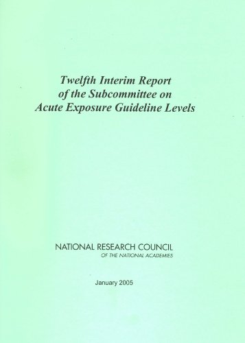 Extremely hazardous substances (EHSs), as defined in the Superfund Amendments and Reauthorization Act of 1986, can be released accidentally as a result of chemical spills, industrial explosions, fires, or accidents involving railroad cars or trucks used in transporting these substances, or intentionally through terrorist activities. It is also feasible that these substance can be released by improper storage and/or handling. Workers and residents in communities surrounding industrial facilities where EHSs are manufactured, used, or stored and in communities along the nation’s railways and highways are potentially at risk of being exposed to airborne EHSs during accidental and intentional releases. This report provides technical guidance on establishing community Acute Exposure Guideline Levels (AEGLs) for certain hazardous chemicals. It reviews the scientific validity of AEGLs developed by the national Advisory Committee on Acute Exposure Guideline Levels for Hazardous Substances, identifies research priorities, and identifies guidance issues that may require modification or further development based on the toxicological database for the chemicals reviewed. This twelfth interim report offers recommendations for improving AEGLs for the following 15 toluene, xylenes, ammonia, bromine, aniline, methyl ethyl ketone, hydrazine, iron pentacarbonyl, phosphine, chlorine, trifluoride, ethyleneimine, propyleneimine, allyl alcohol, ethylene oxide, and nickel carbonyl.