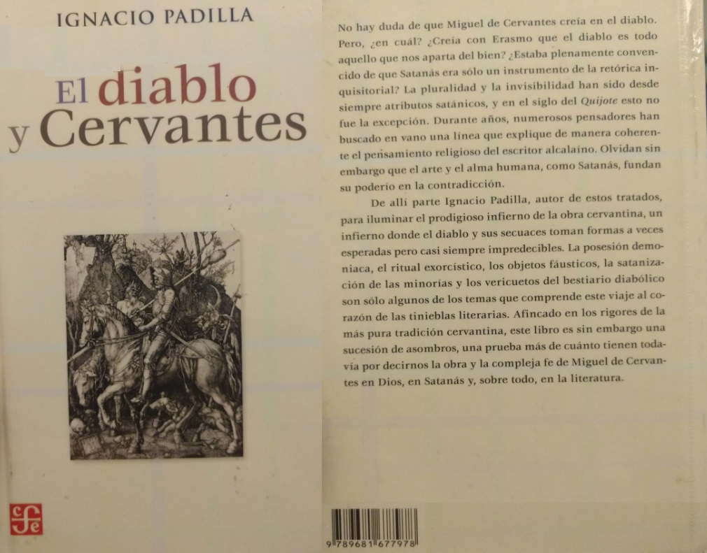 Este libro escrito por el brillante autor Ignacio Padilla, quien desgraciadamente nos dejó hace unos pocos meses a una muy corta edad, es un análisis de la presencia del diablo en la obra de Cervantes; destacando los muchos puntos de aparición o insinuación de la negra presencia en el Quijote; y la satanización de todo, desde lo muy malo hasta lo muy bueno; porque el diablo puede ser culpado tanto de la mala fortuna, como por la mejor de las suertes y los poderes, dependiendo de la lectura que se haga.