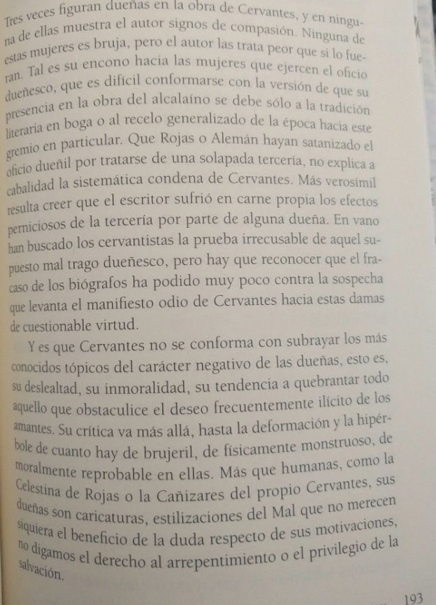 Bajo estas líneas una descripción de cómo Cervantes se aprovechaba de la "brujerización" para tratar de neutralizar el poder de las mujeres ricas o simplemente dueñas a las que se les debía dinero: