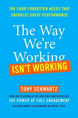 Basically, Schwartz argues that we don't work in ways that allow us to be our most creative or effective or happy and at great cost. A few of the things he discusses include: how multi-tasking doesn't work; our true attention spans; how nutrition, fitness, and sleep are tied to productivity; and how culture of feedback, support, and innovation can make a workplace more enjoyable and effective.