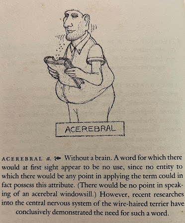 I don't think it was nearly as clever, witty, humorous or funny as the author intended. I did come across several new words that I never knew existed. It was a slow read, but I pushed through it. I think the book is better to be glanced at, picking a page at random from time to time, than to read cover to cover.