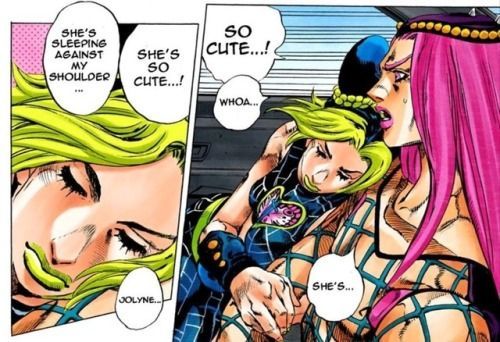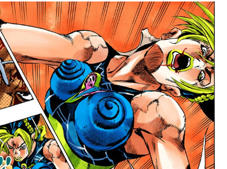 I love Jolyne so much in C-Moon part 1 (ch 735) !! She's so badass, confronting the enemy and taking a few test hits, and being so nonchalant about being turned inside out and back agin. I also loved everyone's expressions and how they were drawn!!