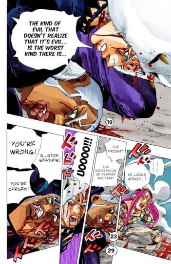 WEATHER REPORT. FUCK. FUCK FUCK FUCK FUCK FUCK. HE WAS FINALLY FREE. HE WAS SAVED. WHAT THE FUCK. bro this final part it really ramping up and honestly making it one of my favorite parts behind stardust. PUCCIS NEW STAND. HOLY SHOT. JOLYNE 1000 IQ PLAY it’s so peak bro… omg