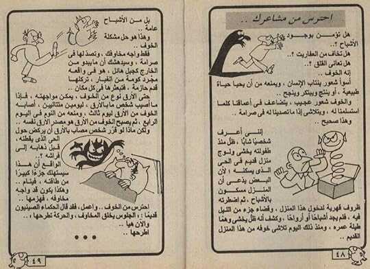المثير للغيظ حقًا أن المؤلف يأتي بعد بضع صفحات ليخبرك بأن عليك ألا تخاف. هيا اطرد الخوف يا رجل! هل تخاف من الأشباح والعفاريت؟ يا للسخافة! هذه أمور خيالية كلها! كلها إلا بعض ما ذكرته لك حالًا قبل صفحات!
