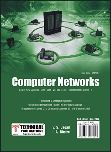 Computer Networks contains Introduction to Data Communication and Networking Data communication, use of Networks, Internet Protocols and standards, layering of Models, OSI model, TCP/IP Internet model. Physical Layer Transmission media (Twisted pair, Coaxial cable, Fiber optic cable), Wireless Medium as Physical Layer (Electromagnetic Spectrum, ISM Band, Lightwave Transmission), Circuit switching, DSL technology, Cable modem. Data Link Layer Services to N/W layer, Framing, Bit Stuffing, Character Stuffing, Error control, Flow control mechanism stop & wait, Go-back-, Selective repeat. Example data link protocol HDLC, PPP. Medium Access Layer Channel allocation problem, Multiple Access, CSMA, CSMA/CD, CSMA/CA. Local Area Network Ethernet, Fast Ethernet, Gigabit Ethernet, Wireless LAN, Blue tooth, Zigbee, Connecting devices- Repeaters, Hub, Bridges, Switch, Router, Gateways, Broadband Wireless Networks. Network Layer Packet Switching, Virtual circuits and datagram, Static and Dynamic Routing Algorithms (Optimality principle, Static Routing Algorithms : Shortest Path, Flooding, Dynamic routing Algorithms : Distance Vector, Link state routing.), Congestion Control, IP Addressing, CIDR & NAT, IP layer protocols (ICMP, ARP, RARP, DHCP, BOOTP), IPv4 and IPv6. Transport layer Elements of Transport protocols - TCP & UDP. Application Layer DNS- Domain Name System, E-mail, FTP, HTTP, WWW, Firewall, Network Security.