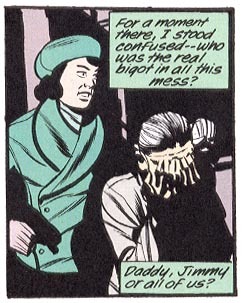 Oh yeah.. and there is that one scene that really felt like it belong in a whole other comic. Kinda icky. I mean it felt real... but icky. But its supposed to. It might have been more effective if it connected to the main story a little more. But it doesn't. As good as this series is overall... those two pages are probably why DC doesn't really like reprinting this volume anymore. (Made worse by me seeing it coming an issue ahead of time.)