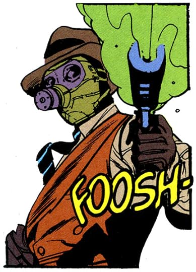 Remember: His schtick is the gas (of the truth and knockout varieties), gas mask and some kung fu moves.