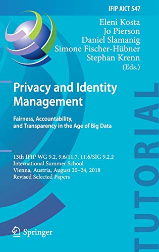 This book contains selected papers presented at the 13th IFIP WG 9.2, 9.6/11.7, 11.6/SIG 9.2.2 International Summer School on Privacy and Identity Management, held in Vienna, Austria, in August 2018. The 10 full papers included in this volume were carefully reviewed and selected from 27 submissions. Also included are reviewed papers summarizing the results of workshops and tutorials that were held at the Summer School as well as papers contributed by several of the invited speakers. The papers combine interdisciplinary approaches to bring together a host of technical, legal, regulatory, socio-economic, social, societal, political, ethical, anthropological, philosophical, historical, and psychological.