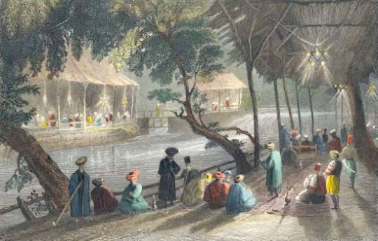 مقهى في دمشق رسم وليم هنري بارليت عام 1836 ---
