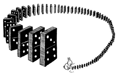 My favorite illustrations remain the ones where the bunnies go out of the way to make special arrangements to develop a set-up where death is contingent upon some other event. It just add to the coldness all around.