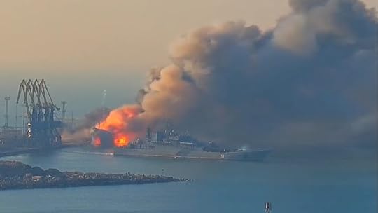 Our Ukrainian friend Marta tells us that the large Russian troop transporter recently destroyed in Berdyansk came to the attention of the Ukrainian defence forces when a journalist bragged about it on Russian TV. I find the story repeated in several places on the web, e.g. here.