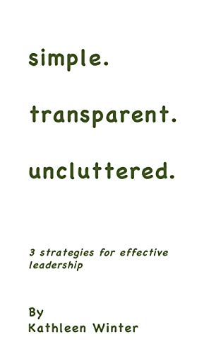 Leaders can learn and develop effective strategies to support their teams, companies and themselves to optimize outcomes. In simple.transparent.uncluttered, Kathleen defines each strategy and shares real life stories of her two decades experience in corporate life that will give the reader pause and reflection. She owns up to her shortcomings during her corporate journey and how she adopted a simple.transparent.uncluttered approach to business and life. She concludes each chapter with a short list of actions the reader can take to implement each strategy.