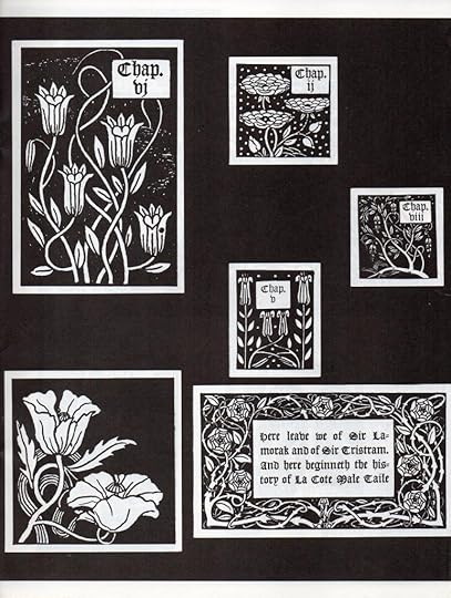 By no means is this all the images from the actual Mort d'Arthur. I'm not sure why some images were chosen: they've blown chapter endpieces up to A4 size, so the lines are fully 1/4" thick (adding to the coloring-book effect), but haven't included Bedivere casting Excalibur into the waters, for example.