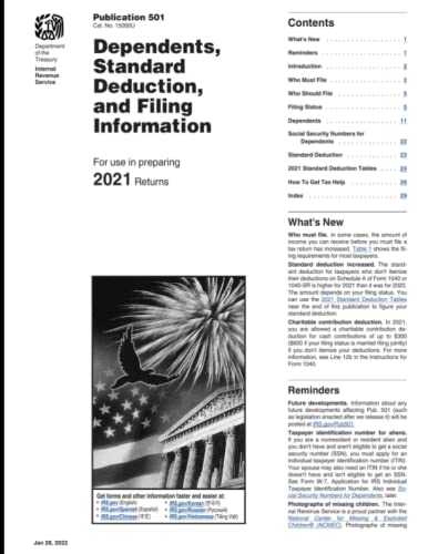 This publication discusses some tax rules that affect every person who may have to file a fed- eral income tax return. It answers some basic who must file, who should file, what filing status to use, and the amount of the stand- ard deduction. Who Must File explains who must file an in- come tax return. If you have little or no gross in- come, reading this section will help you decide if you have to file a return. Who Should File helps you decide if you should file a return, even if you aren't required to do so. Filing Status helps you determine which fil- ing status to use. Filing status is important in determining whether you must file a return and whether you may claim certain deductions and credits. It also helps determine your standard deduction and tax rate. Dependents explains the difference be- tween a qualifying child and a qualifying rela- tive. Other topics include the social security number requirement for dependents, the rules for multiple support agreements, and the rules for divorced or separated parents. Standard Deduction gives the rules and dol- lar amounts for the standard deduction—a ben- efit for taxpayers who don't itemize their deduc- tions. This section also discusses the standard deduction for taxpayers who are blind or age 65 or older, as well as special rules that limit the standard deduction available to dependents. In addition, this section helps you decide whether you would be better off taking the standard de- duction or itemizing your deductions. How To Get Tax Help explains how to get tax help from the IRS.