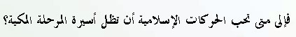 قليل الحجم لكن يتناول موضوع مهم جدااااااااااا وهو واقع الحركة الاسلامية يقارن بين تأثير الدولة قديما على المجتمع الاسلامي وتأثيرها الحالي في ظل العولمة والحكومات المركزية والموقف الفقهي من الحاكم المستبد في ظل ثنائية الدولة والامة, يتناول ايضا مشاكل الحركة الاسلامية وما لحق بها من تشوه فكري وأخلاقي يناقش في النهاية امكانية وجود حكومة اسلامية من مجتمع مسلم من بيت مسلم وهل استطاع ذلك رسول الله اثناء دعوته بمكة؟؟ وينتهي بسؤال : الى متى تحب الحركات الاسلامية ان تظل اسيرة المرحلة المكية؟؟؟