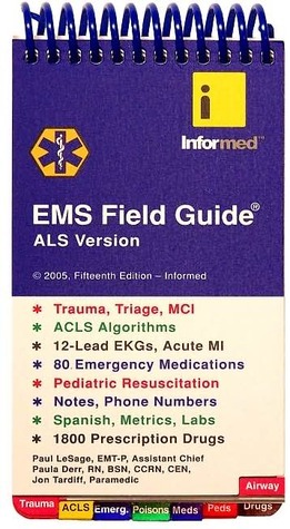 Newly revised 15th edition! This small flip-chart booklet makes it easy for Paramedics, Nurses and Physicians to look up their patients' medications, check drug doses, quickly interpret 12-Lead EKGs and much more! At only 3"x5" it easily fits in your pocket, has color-coded tabs, and is Waterproof, Alcohol-fast and "Street-Tough." This edition features information covering Airway Management, including the new King LT™ Airway, New Top 1800 Prescription Drugs, Laryngeal Mask Airway / RSI, Poisons & Overdose / “Rave” Drugs, Medical Emergencies Section, ACLS Algorithms, 82 Emergency & ACLS Drugs, 12-Lead ECG Section & Acute MI, IV Drips, Drug Infusions, Dosages, Fibrinolytics for AMI & Stroke / CVA, Childbirth, Diabetic, Respiratory Distress, Pediatric Resuscitation, Drug Doses, Vitals, Trauma, Triage, MCI, Glasgow Coma Scales, Burn Charts, the “Rule of 9s”, Pulse Oximetry, Infectious Diseases, Quick EMS Spanish Translations, Lab Values, Metrics, Notes & Much More!