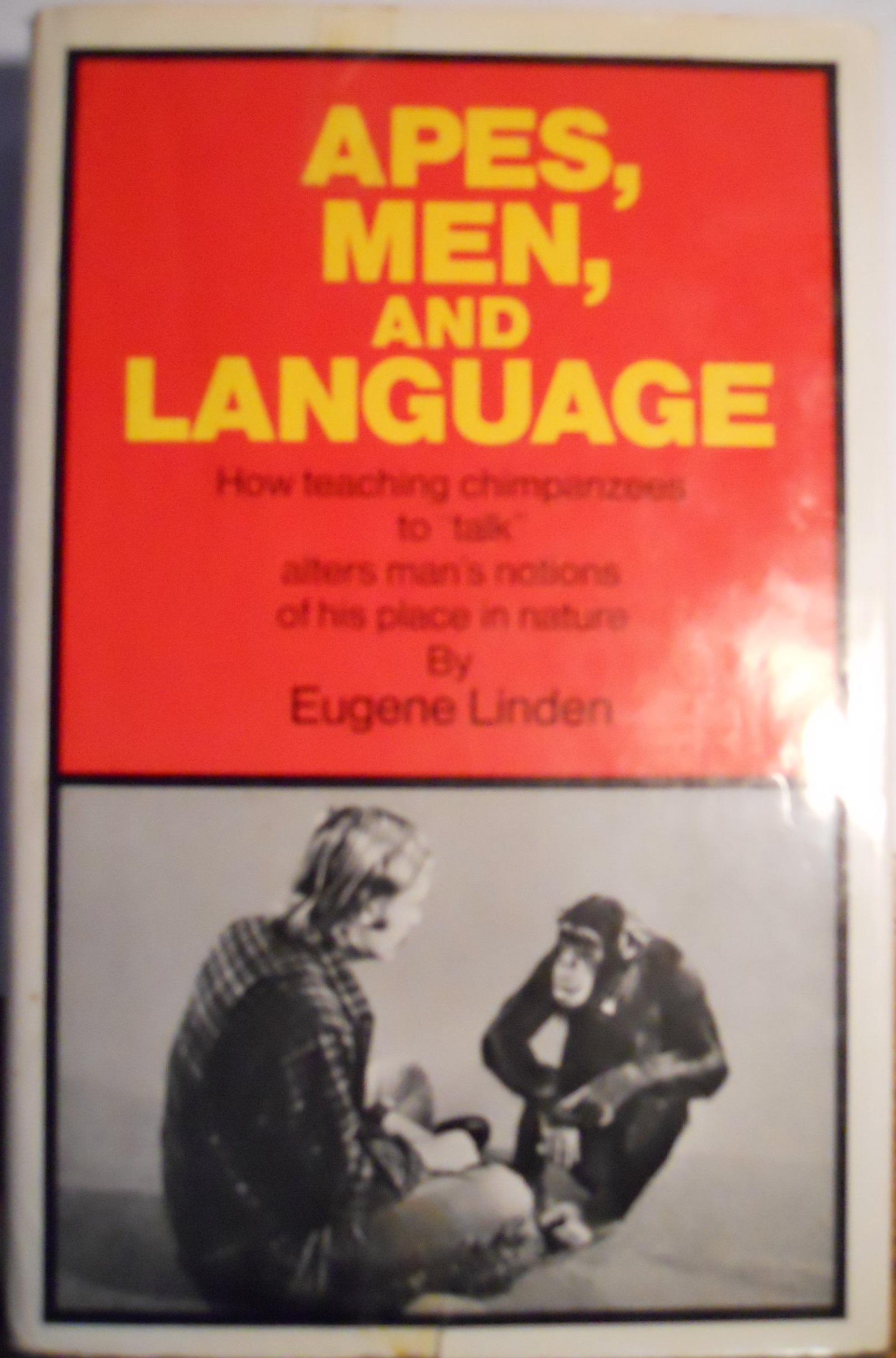 Author Eugene Linden wrote in the Introduction to this 1974 book, “It is the purpose of this book to present what is known so far about the chimpanzee’s skills in using language and then to make sense of these achievements… Instead of setting this book in the agglomerate of notions about language, we will view that Babel of opinions from the new perspective offered by the chimpanzee. By sorting through the aggregate abilities associated with language, we will see how these abilities have been illuminated by the performances of Washoe and her confreres. We will follow Washoe into the temple of language, watch her as she steps on various toes in the behavioral sciences, and then discuss a particular aspect of language when someone cries, ‘Ouch!’… Consequently, different characteristics of language that are important to understanding Washoe will be dealt with recurrently throughout the book.”