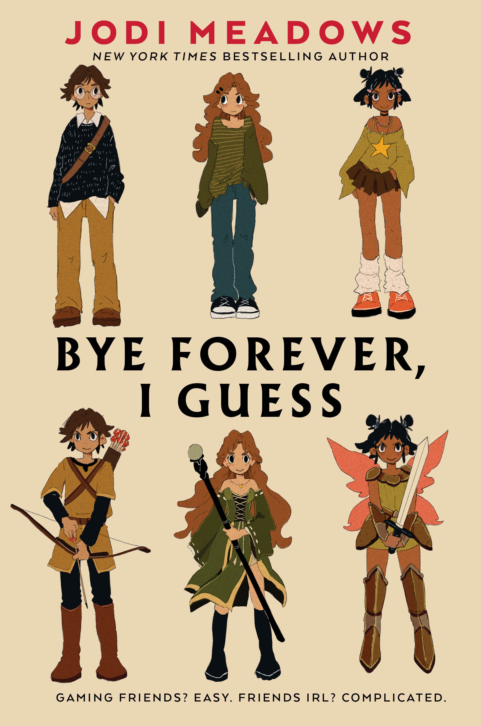 “Bye Forever, I Guess is the fresh, funny, and deeply sweet middle-grade debut of New York Times bestselling author Jodi Meadows (MY LADY JANE). Speaking to the messiness of middle-school friendships (and first loves), this is a warm, witty, enormously entertaining book—and a love letter to geek culture, gaming, and the healing power of fantasy“