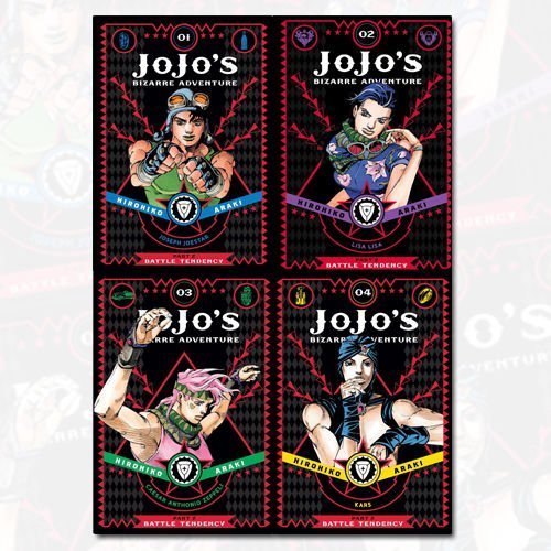 JoJo's Bizarre Adventure Part 2 Battle Tendency Vol 1-4 Collection 4 Books Bundle. Description:- JoJo's Bizarre Adventure Part 2: Battle Tendency Volume 1 The beginning of the Battle Tendency Arc! The Joestar family is called upon to do battle against evil again! This time, it's Joseph Joestar, the grandson of Jonathan Joestar! And his enemies are more powerful and diabolical than ever! Behold! The terror of the Pillar Men! For older teen audiences. JoJo's Bizarre Adventure: Part 2--Battle Tendency Volume 2 The battle against evil takes a diabolical twist as more Pillar Men awaken! Now it is up to Joseph Joestar and his new ally Caesar Zeppeli to try and stop their nefarious plan! But these are creatures of unimaginable power, and JoJo and Caesar will have to get a lot stronger to even stand a chance! For older teen audiences. JoJo's Bizarre Adventure: Part 2--Battle Tendency, Vol. 3 JoJo's Bizarre Adventure is a groundbreaking manga famous for its outlandish characters, wild humor and frenetic battles. A multigenerational tale of the heroic Joestar family and their never-ending battle against evil! JoJo and Caesar face their most powerful foe yet-the leader of the Pillar Men! Armed with the ability to create a weapon from any part of his body, he is more than a match for JoJo and his allies. And now that his brethren have fallen, he's got a score to settle. Prepare for a battle unlike any before! JoJo's Bizarre Adventure: Part 2--Battle Tendency, Vol. 4 JoJo's Bizarre Adventure is a groundbreaking manga famous for its outlandish characters, wild humor and frenetic battles. A multigenerational tale of the heroic Joestar family and their never-ending battle against evil! The conclusion of the fight against the Pillar Men! It has been a long and perilous journey for JoJo and his allies. Many battles have been fought and many lives lost.