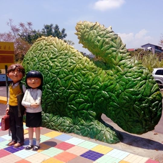 I can't thank my mom ENOUGH for finding and suggesting to go visit a train station in Yilan (宜蘭), for along itself, it is also near a park that's full of Jimmy's work. That was when I finally "knew of" this book. Some photos we've taken there that are recreating scenes from this particular book: