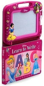Disney's beautiful princesses all love to practice their ABCs! Join Aurora, Belle, Cinderella, Snow White, Ariel, Jasmine, and Mulan as they show you how to write the alphabet from A to Z, and introduce you to a world of words. The magnetic drawing pad is erasable, so you can enjoy the book again and again!
