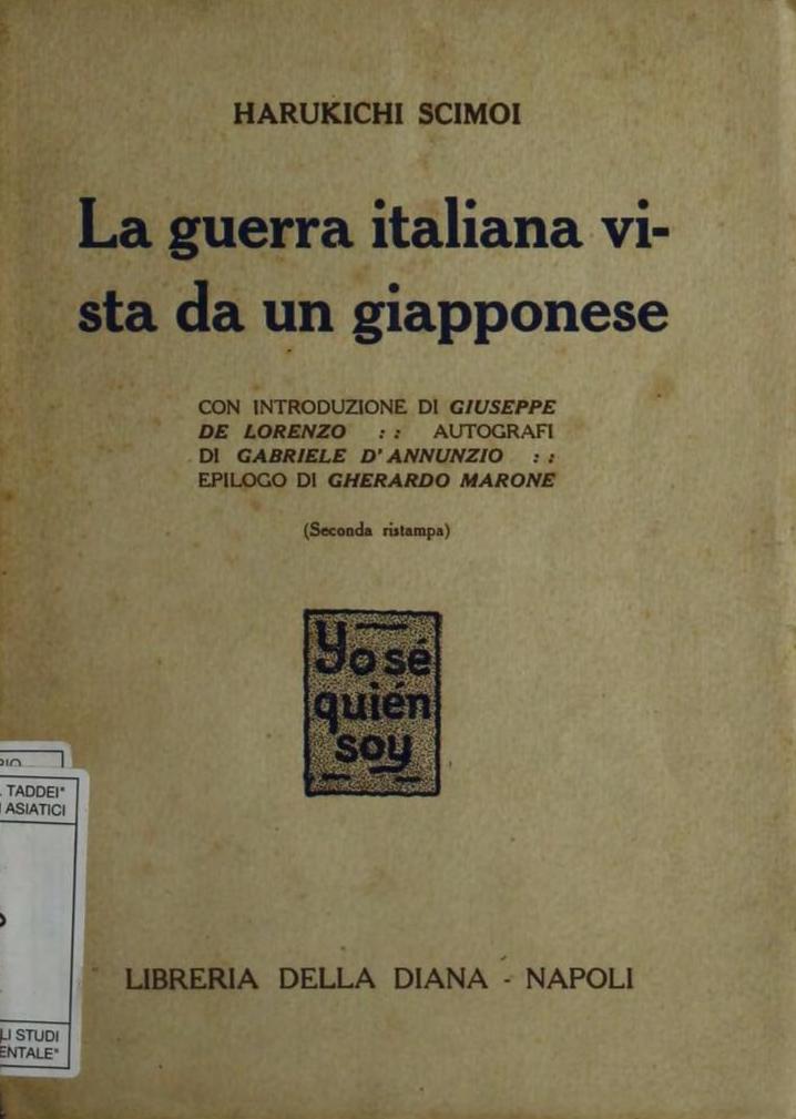 Scimoi Harukichi, a Japanese Professor living in Italy, went to visit the Italian front between October and November 1919. This book, pubblished in Naples, collects the letters he sent from the war.