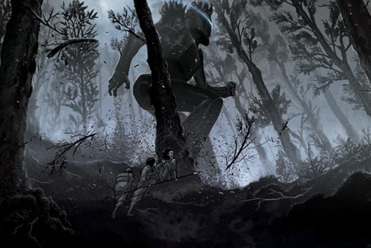 That is some beautiful artwork. The story is one that resonates with many, an average peasant boy up against the seemingly all-powerful, greedy empire, and the fate of the world in the balance. At times I felt like certain details were unclear or events happened so fast I had a little whiplash. So the pacing could’ve used a little more work. The overarching plot was fairly easy to follow, though. Mature readers who like dystopian-ish fantasy with touches of Norse mythology will likely want to pick this up, and those who like to read graphic novels just for the artwork.