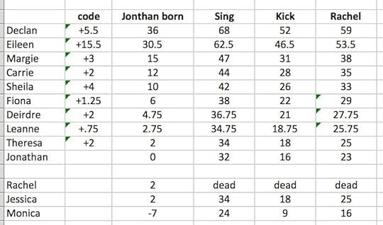2) The birth order you post was just a promo graphic. The birth order is attached below (A Goddess reserves the right to change her mind at any time - please know I might have fudged the math or gotten something wrong somewhere. I'm only human)