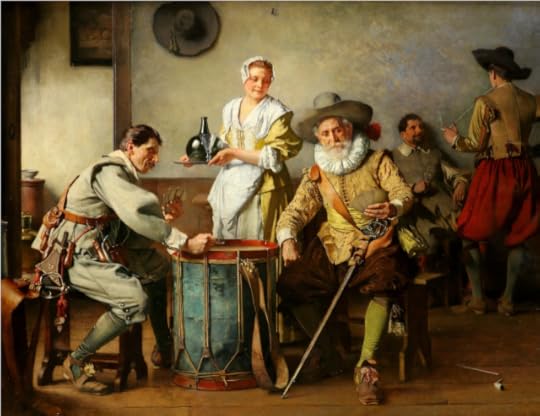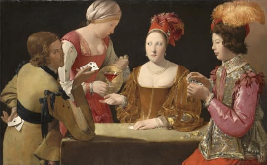 Valentin de Boulogne, sometimes referred to as Le Valentin, was a French painter in the tenebrist style. His father, also named Valentin, and his uncle Jean were both painters. Valentin had success with a type of composition invented by Caravaggio in which fortune tellers, drinkers, or gamblers are grouped around a table. Valentin himself was fond of carousing and fine wine. Approximately 75 of his works survive. Valentin's genius shows in the subtleness of psychological expression and interplay among his characters, as well as in the refinement and finesse of his painting technique.