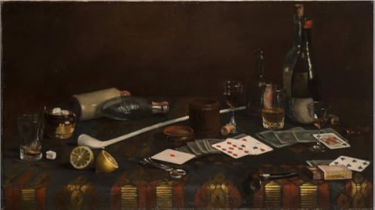 Commissioned for a Chicago men’s club, Claude Raguet Hirst’s A Gentleman’s Table subtly critiques masculine pastimes while still appealing to male patrons. The work’s hyperrealistic style exemplifies a traditional technique called trompe l’oeil, French for “deceives the eye.” At the time, trompe l’oeil works were typically painted by and for men. Hirst claimed the method as her own and refashioned it with messages appealing to female viewers. Her skill rendering tight contours, tonal values, reflections, and textures resulted in successful illusionistic images.