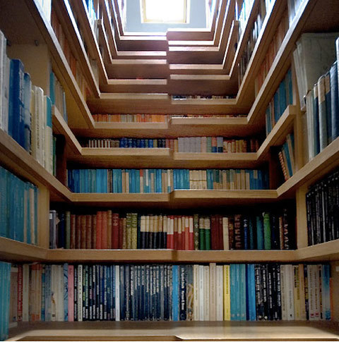 That last one, if you didn't know, is a STAIRCASE! That is frickin cool. My bookshelf is just a plain white square one but these are seriously awesome