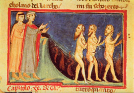But Tiresias has another very interesting representation, with his head turned 180º. This comes from his appearance in Dante's Comedia.