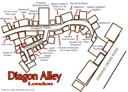 IntroductionTapping just the right brick in the wall behind the Leaky Cauldron in London ("Three up...two across...") will reveal an archway which is a portal into Diagon Alley, a long cobbled street where is to be found a strange and exciting assortment of shops and restaurants. It is unquestionably the hub of commerce in the British wizarding world, with virtually every wizarding business stationed there. Consequently, the demand for space here is steep, and rent costs "loads of Galleons" (OP30).