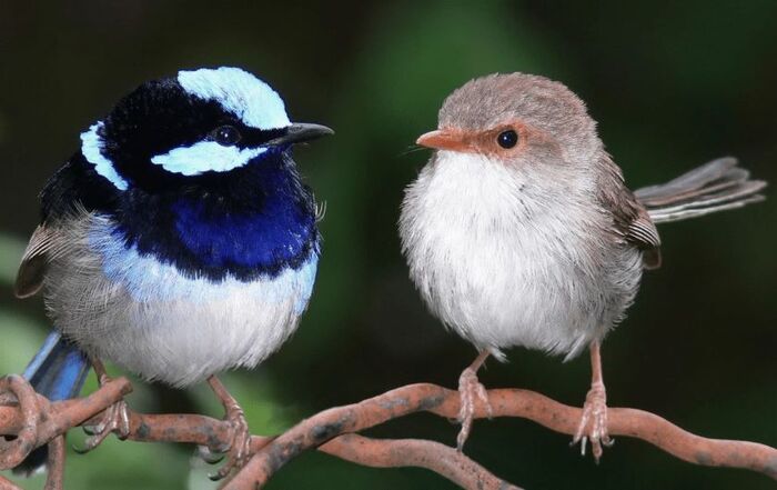 BLUE WREN AND PEEWIT DANCE ABOUT ITS LIP,